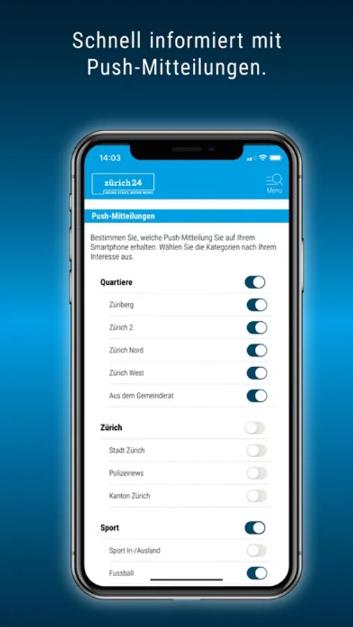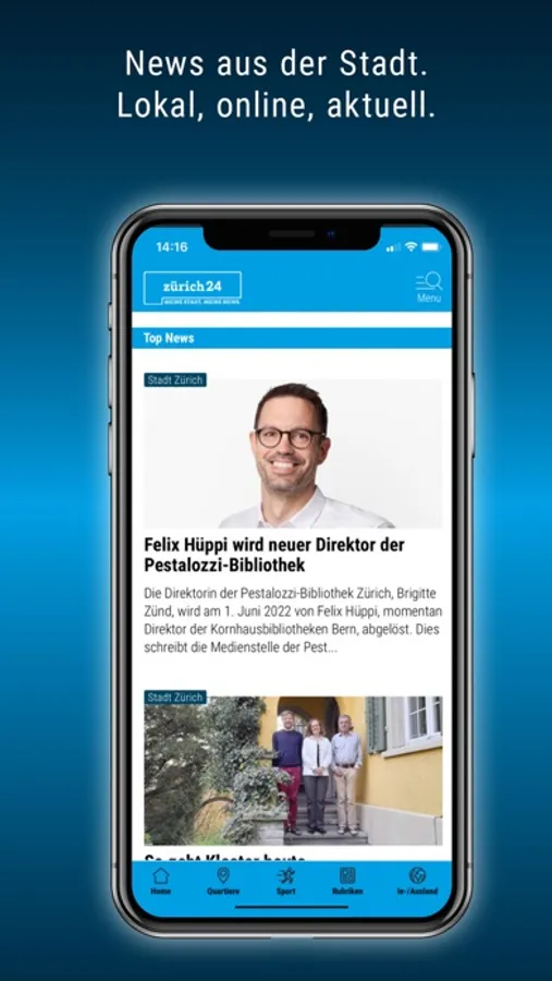 Die Zürich24-App bietet Ihnen Nachrichten zu Politik, Kultur, Gesellschaft, Wirtschaft und Sport. Mittels Push-Mitteilungen benachrichtigen wir Sie über die wichtigsten Ereignisse aus der Stadt.