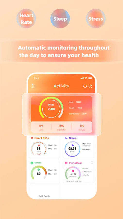 3. Record the sports data collected by the smart watch, including the number of steps, stride frequency and distance, and display them in the form of line graphs and histograms;