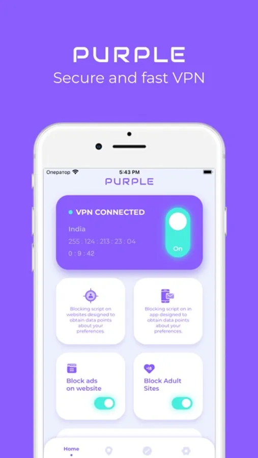 VPN Adblock Purple is a secure and fast VPN application that includes an ad blocker on many information sites.