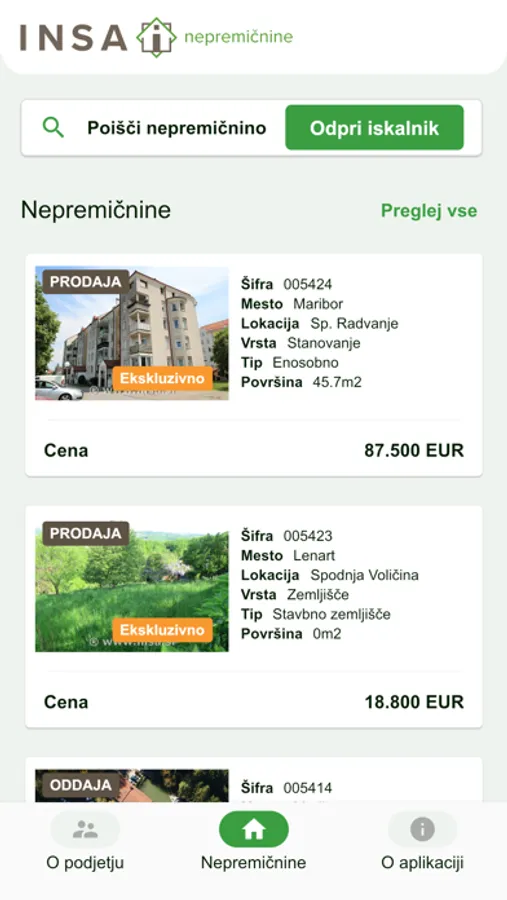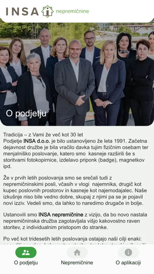 Aplikacija omogoča na enostaven način pregled nepremičnin v prodaji in oddaji. Uporabnik lahko podrobno pregleda posamezno nepremičnino in preko aplikacije odda tudi povpraševanje. Uporabnikom je omogočeno tudi kontaktiranje s podjetjem preko standardiziranih kontaktnih obrazcev. Glede na zanimanje si lahko uporabnik določi iskalni niz nepremičnine in tudi potisno sporočilo, ko se v ponudbi pojavi nepremičnina s takimi značilnostmi. Uporaba aplikacije je brezplačna.