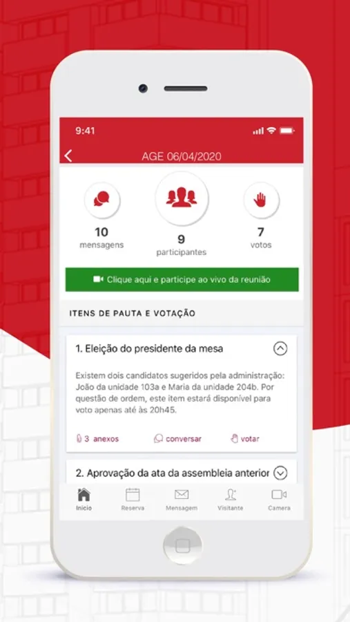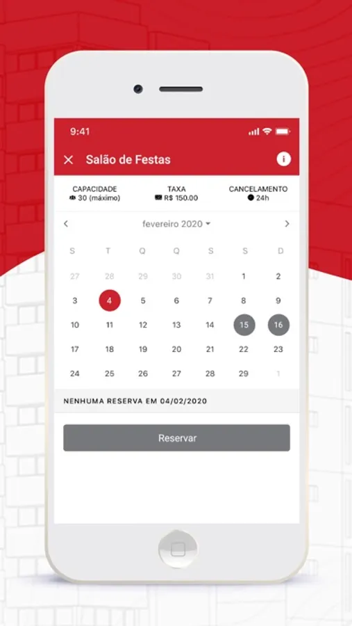 - reservas no salão de festas, mudanças e outras agendas