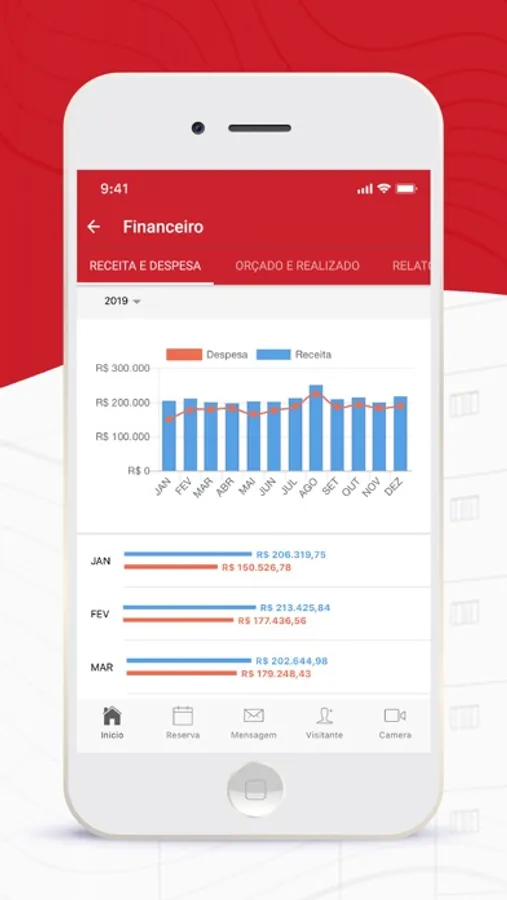 - comparativo de orçado versus realizado (gráficos e detalhamento)