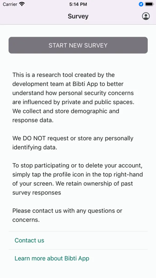 No personal identifying information is collected and it uses the device id to create a unique id for each survey participant.