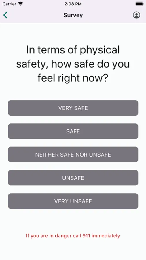 This is a free anonymous survey tool designed to collect real time data about personal safety. The survey is designed to current research standards and it purposes is to provide institutions and organizations insights as to how safe their employees feel through out the day. Using a longitudinal approach, up to twenty data points will be collected from each survey participant. The use of push notifications randomizes the administration of the survey to elicit sample data from various points of time and location.