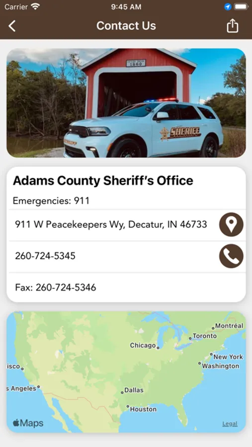 The Adams County Sheriff’s Office mobile application is an interactive app developed to help improve communication with area residents. The Adams County Sheriff App allows residents to connect with the Adams County Sheriff’s Office by reporting crimes, submitting tips, and other interactive features, as well as providing the community the latest public safety news and information.