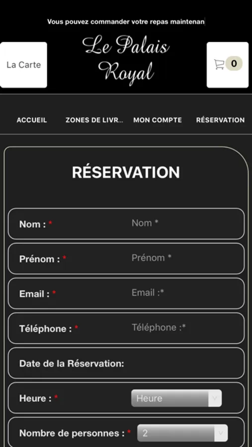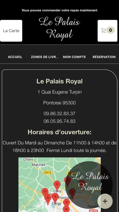 L'application Le Palais Royal vous permet de commander en ligne ou par téléphone via votre application. Vous pouvez consulter notre carte et choisir vos produits.