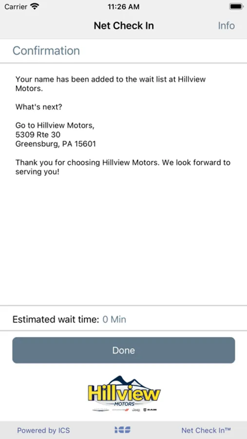 Getting your auto serviced at Hillview Motors is now easier than ever. Let your name wait for you, while you do more important things. Hillview Motors utilizes ICS Net Check In™ to allow you to check in for a service using your phone, iPad or via the web.
