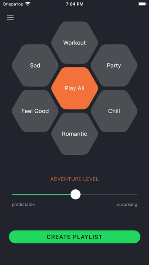Drag adventure slider toward 'predictable' to hear more of your favorites or toward 'surprising' to discover new music.