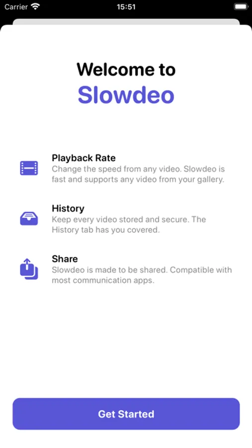 With a beautiful and easy-to-use interface, Slowdeo allows you to change the speed of your videos, slowing down and exporting them with that speed, ready to be shared or saved.