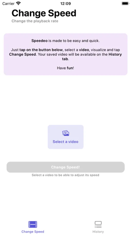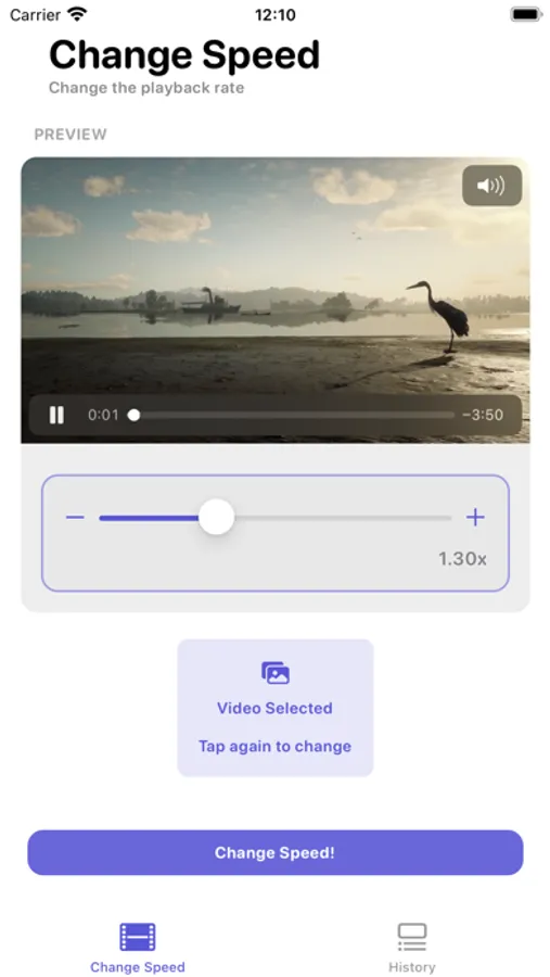 Just select it, adjust the slider and tap "Change Speed!". As simple as that.