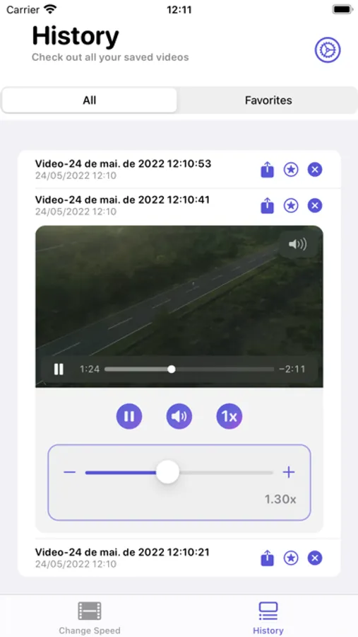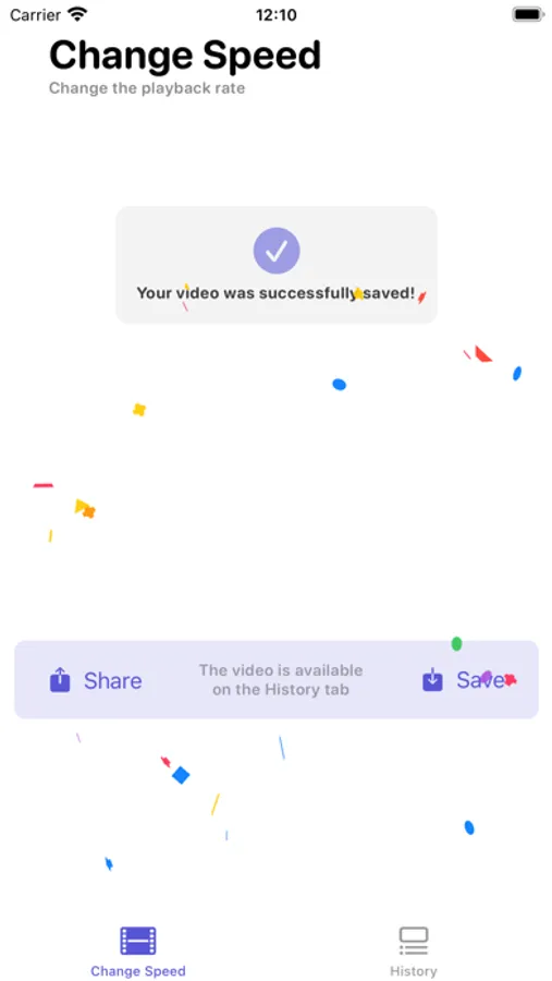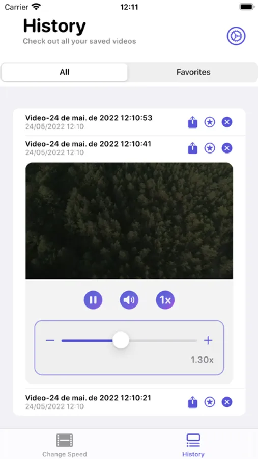 Your videos are also kept save inside our History tab, where you can share, favorite and delete any video previously created.