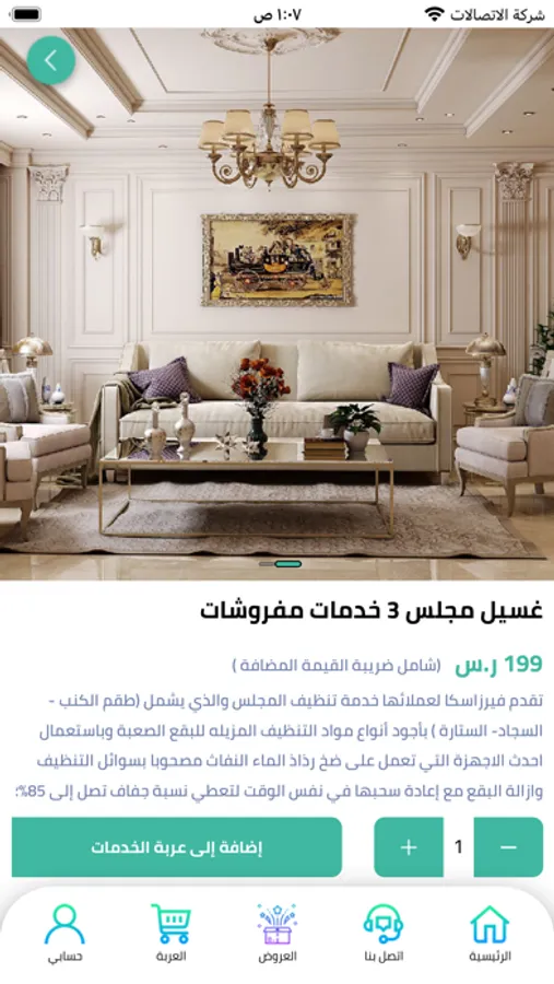 يتوفر لدينا تعقيم بالبخار وتنظيف للأثاث و السجاد و إزالة الغبار.