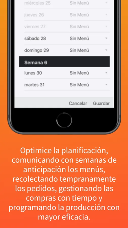 - Optimice la planificación comunicando con semanas de anticipación los menús diarios, recolectando tempranamente los pedidos, gestionando las compras con tiempo y programando la producción con mayor eficacia.