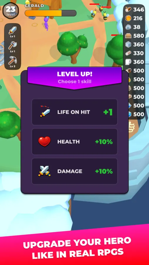 To get to the new biomes, you will need combat and resource gathering skills. Equip yourself with a sword, an ax and a pickaxe, pump them up and hit the road: