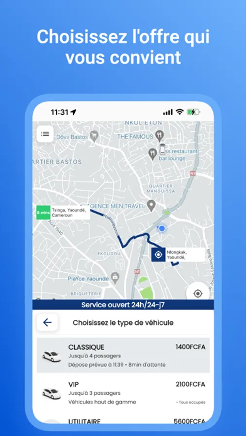 ONGO met à disposition des chauffeurs disponibles 24h/24 et 7j/7, des prix indiqués dès la commande, et des déplacements en toute sécurité.