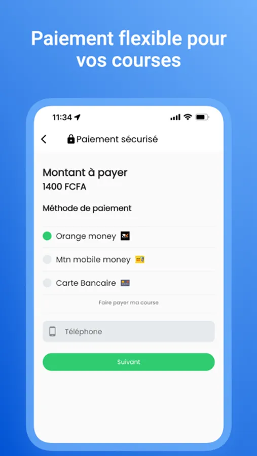 Avec nous, vous pouvez rejoindre votre destination en un clic. Ouvrez l’application et saisissez votre destination. Nous vous mettrons en relation avec un chauffeur à proximité qui vous y conduira en toute sécurité. Afin de garantir une transaction sécurisée, les paiements s’effectuent en Mobile Money.
