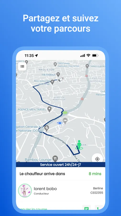 4. Visualisez la localisation de votre chauffeur en temps réel.