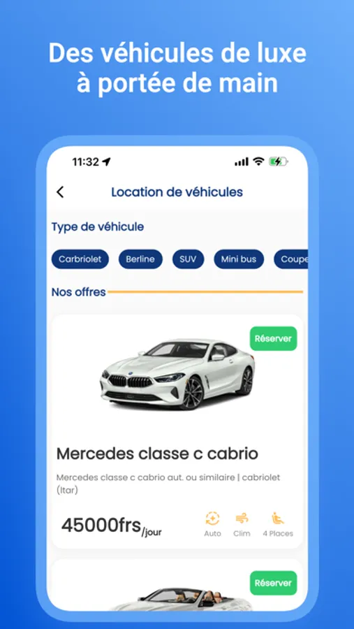 ONGO vous propose également un service de location de voitures avec ou sans chauffeur. Il existe un large choix de voitures convenant à tous budgets.