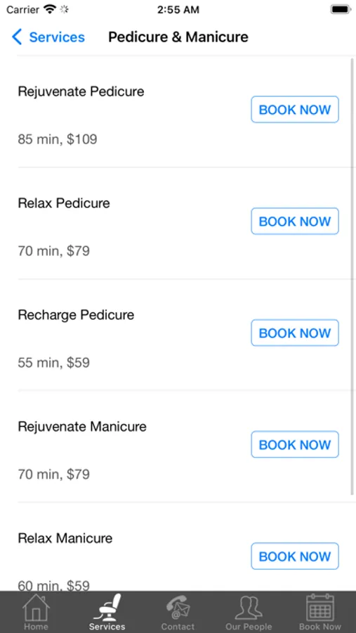 4. Services Menu: Browse the services we offer with times and prices.