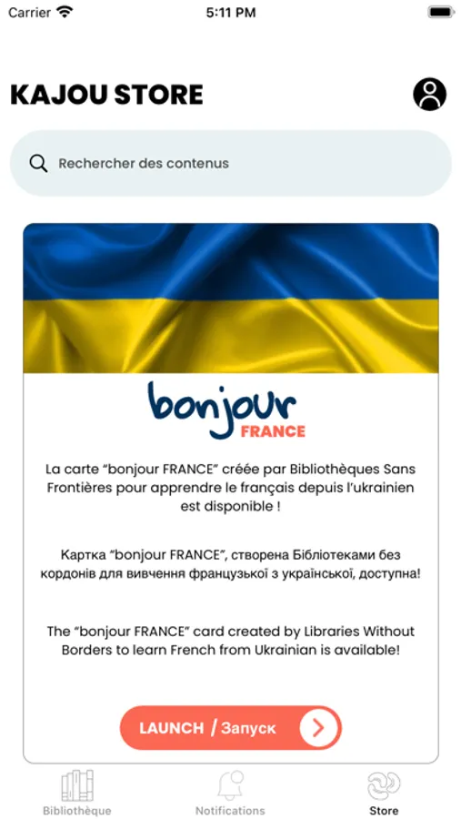 Kajou est une entreprise sociale créée par l'ONG Bibliothèques Sans Frontières. Elle repose sur l’expertise de l’ONG en matière de création et de sélection de contenus et déploie des technologies offline innovantes pour les diffuser au plus grand nombre.