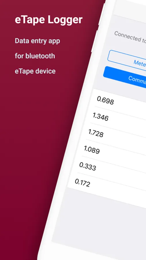 eTape Logger is the premier app to connect with bluetooth eTape devices. Easy connection and data management allow you to get work done.