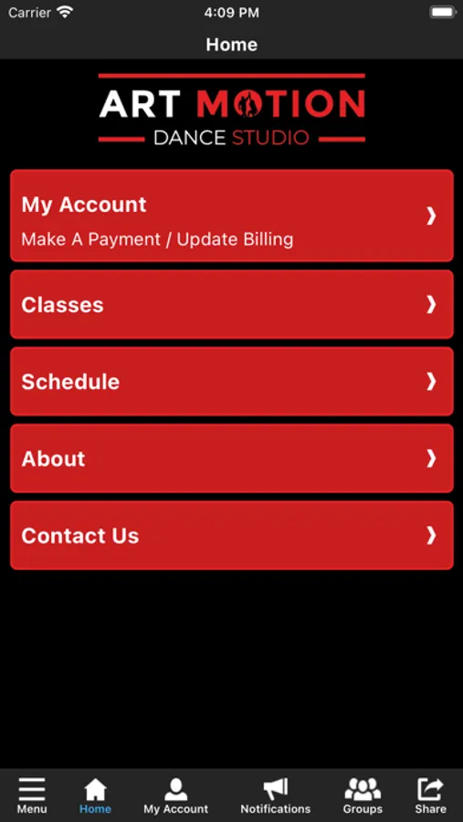 This is easy-to-use, on-the-go access to everything Art Motion Dance Studio has to offer right from your smartphone.