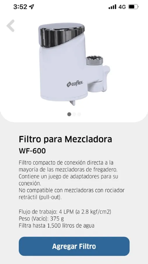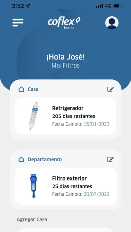 Con la ayuda de la App Coflex Home sabrás cuándo reemplazar tu filtro, ya que podrás registrar el filtro que instalaste, automáticamente hará un cálculo de su vida útil y se generará la fecha de reemplazo; la App enviará notificaciones cuando la fecha se aproxime.