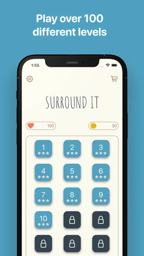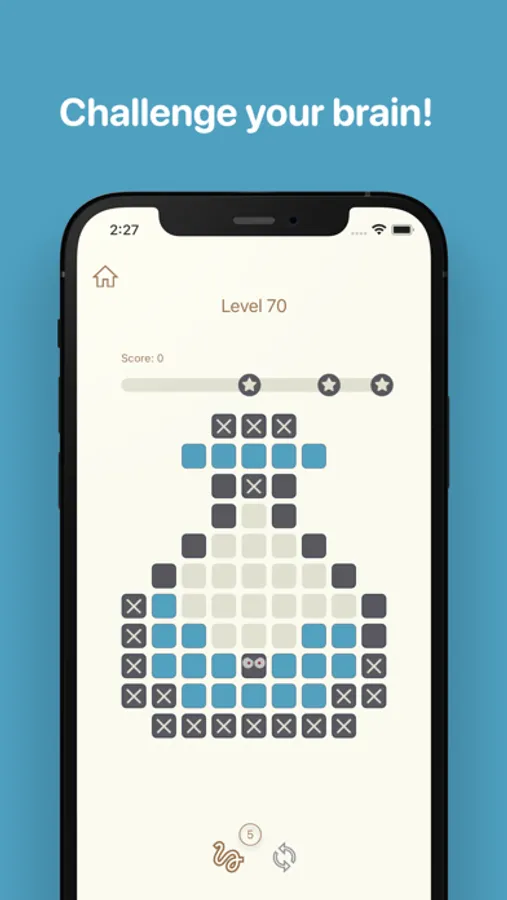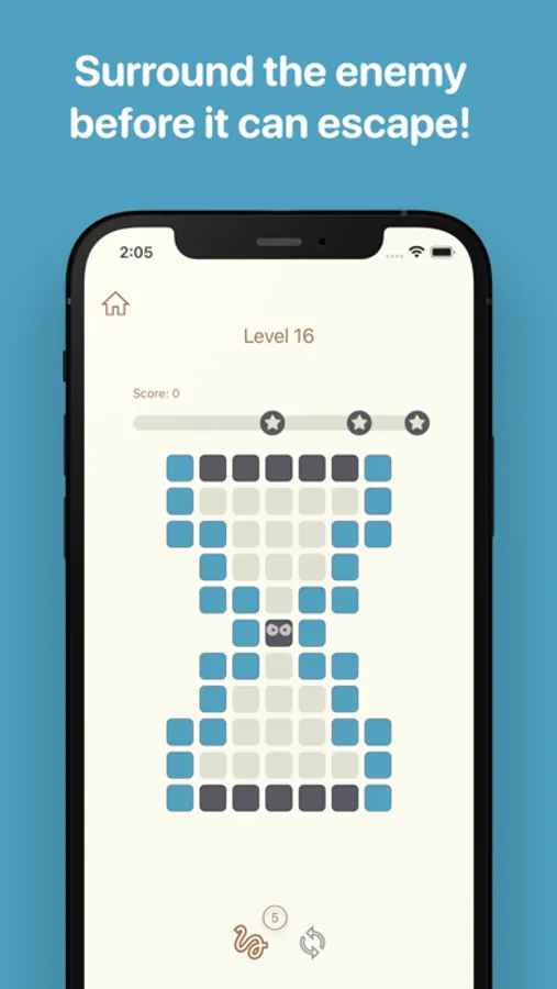 The less blocks you place the higher score you will get! You also get a big bonus at the end of the game for every escape block you don’t cover with a wall block during the game. Aim to get the score as high as possible to collect all 3 stars and unlock the next level.