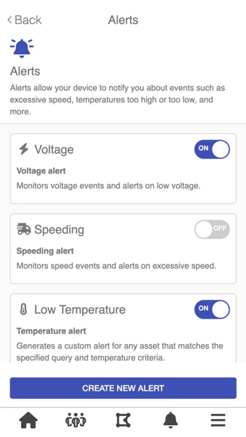 • Auto alerts for tamper, movement, speed, temperature, potential theft