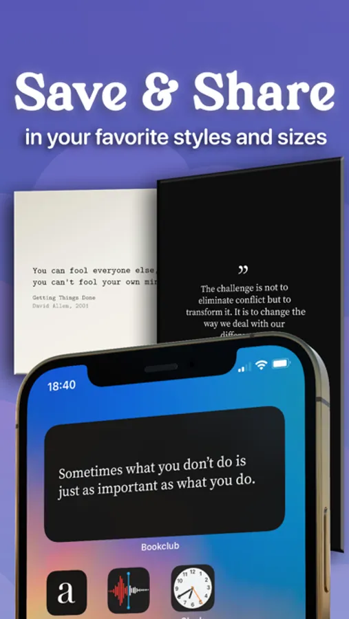 If you are looking for inspirational quotes, life-lessons, mindfulness, relationship advice, business knowledge or motivational quotes for your daily life, you can find all this in the world's greatest books. Grow your mind every time you unlock your screen with the new bookclub quote widget and with daily quote notifications.