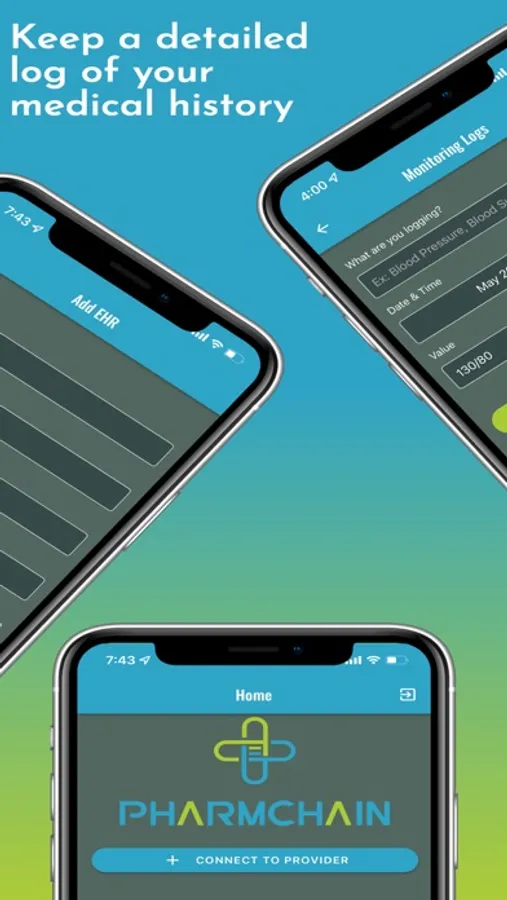 Pharmchain offers a more efficient and effective way of patient-centered care. Patients can log medications, clinical visits, and monitor vitals like blood pressure and blood sugar. Patients have the option of connecting with their providers to allow them access to view their logs in an effort to provide more individualized care.