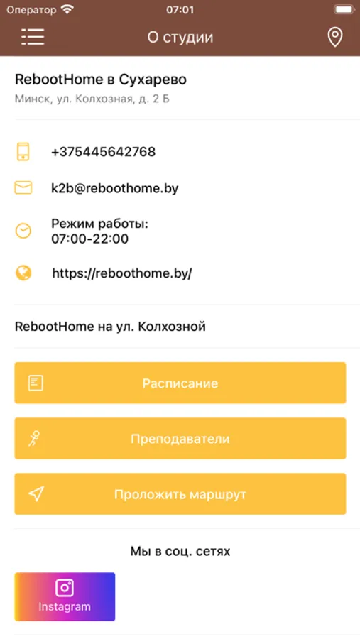 С помощью приложения вы можете записываться на занятия студии Reboot Home и узнавать об изменениях в расписании.