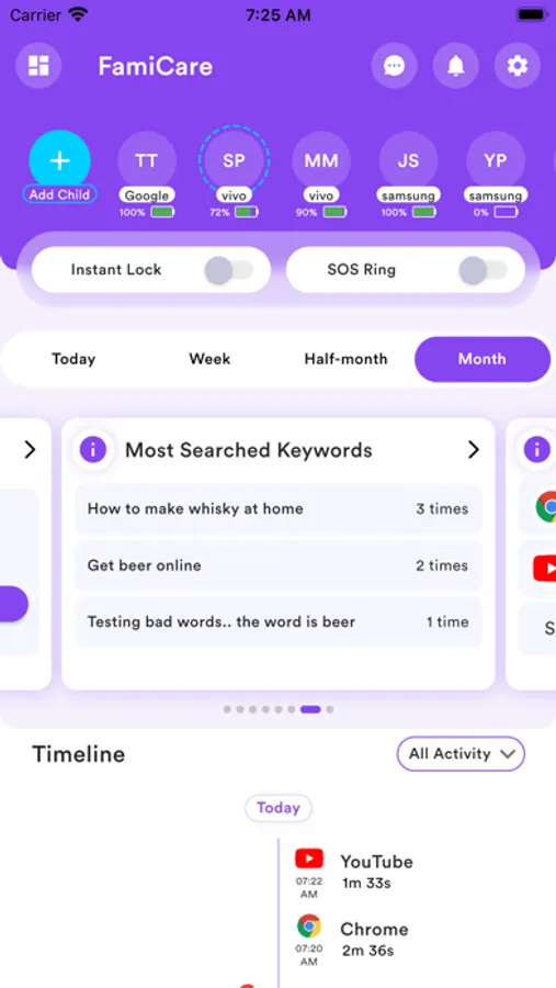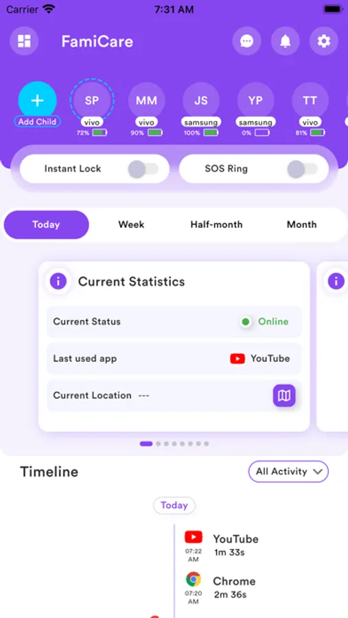 FamiCare is world’s Most Trusted screen time and location tracker parental control app which is created to protect kids and provides supervision to keep kids safe online. The app is a powerful child control app for screen time, tracking location, tracking application usage time, limit app usage, limit phone usage, website filtering, game/porn blocking, YouTube video monitoring, Social media monitoring, bad words monitoring, block inappropriate content , SoS Ring and Instant Device Block functionality etc.