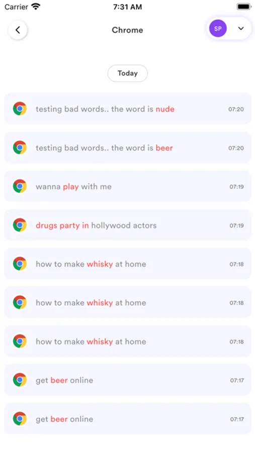 -Detect risky keywords from search history, received or sent texts on social media app