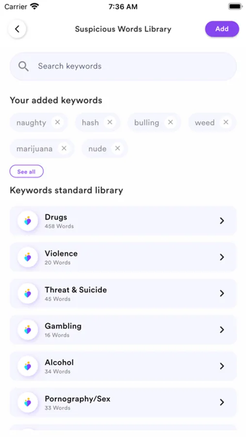 -Setting keywords you concern about, such as Sex, Violent or Drugs
