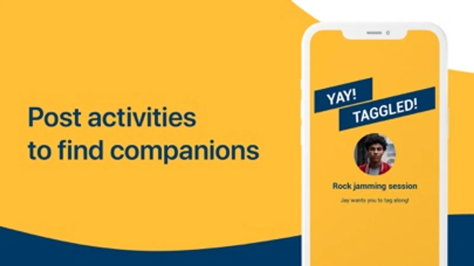 Well, look no further! Taggle makes it quick and easy to set up activities, hangouts, gatherings, and events (collectively known as “Taggles”) for others to “tag-along” (Get it? Aha-aha!). Create Taggles for your interests, hobbies, and upcoming events such as parties, concerts, and trips, and then use our convenient scheduler and chat functions to manage your Taggles.