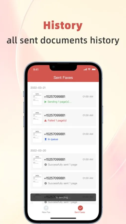 Send faxes from your mobile phone anytime&anywhere. Easy and fast operation, no fax machine needed! Send any type of files including: documents, pictures, photos of where you took real-time, etc.