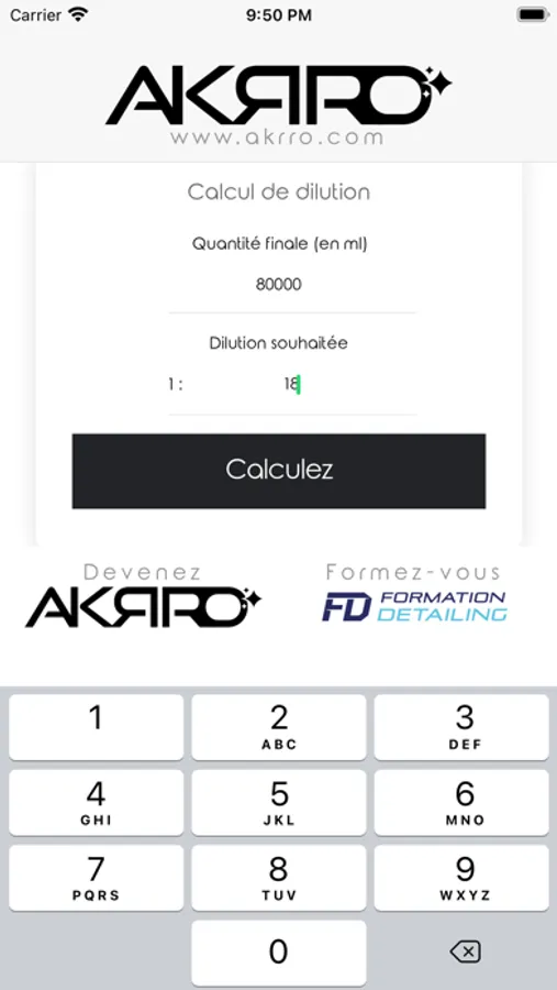 Cette application de calcul de dilution "Akrro Detailing" a été développée pour toute la communauté de detailers et préparateurs auto dans la cosmétique automobile.