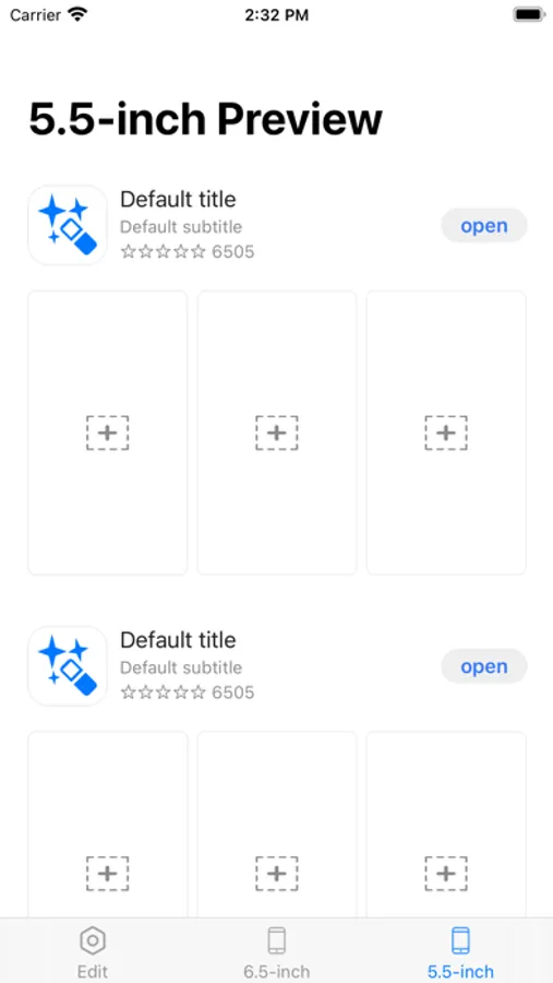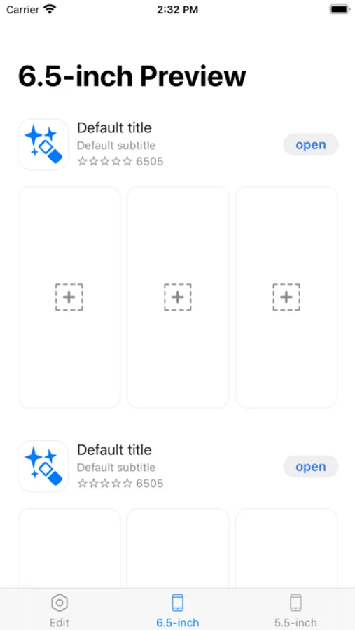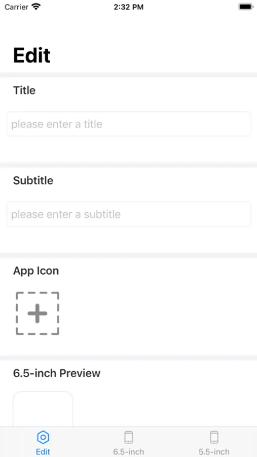 Do you want to preview what your product looks like on the app store in advance? Let me help you. First download this app and then edit your app information. You can see the 5.5-inch and 6.5-inch app preview.