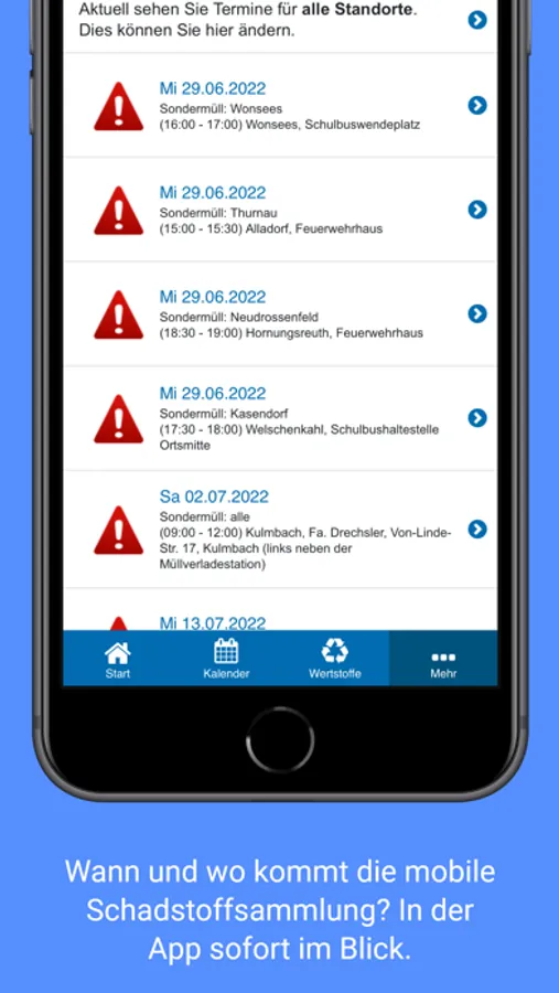 * Wann und wo kommt die mobile Schadstoffsammlung? In der App sofort im Blick.