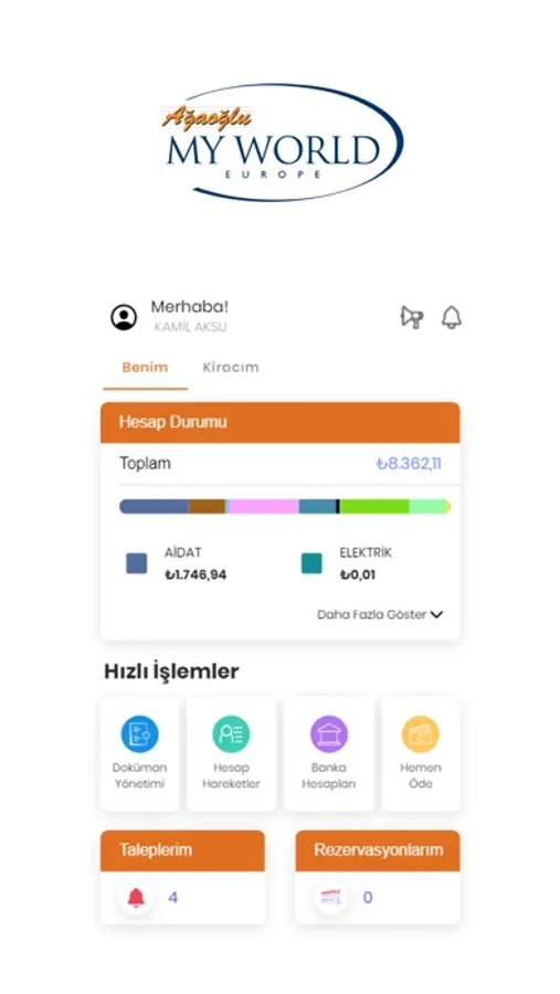 • İkamet Eden Üyelerim; bağımsız bölümünüzde ikamet eden kişilerin bilgilerine erişim,