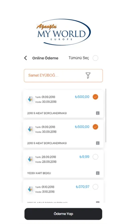 • Online Ödeme; Aidat, Isınma, Yatırım, Sıcak su vb. gibi gider kalemlerine ilişkin tutarları görüntüleme ve kendi Site Yönetimi Hesabınız ile ödemelerinizi kolayca gerçekleştirebilme,
