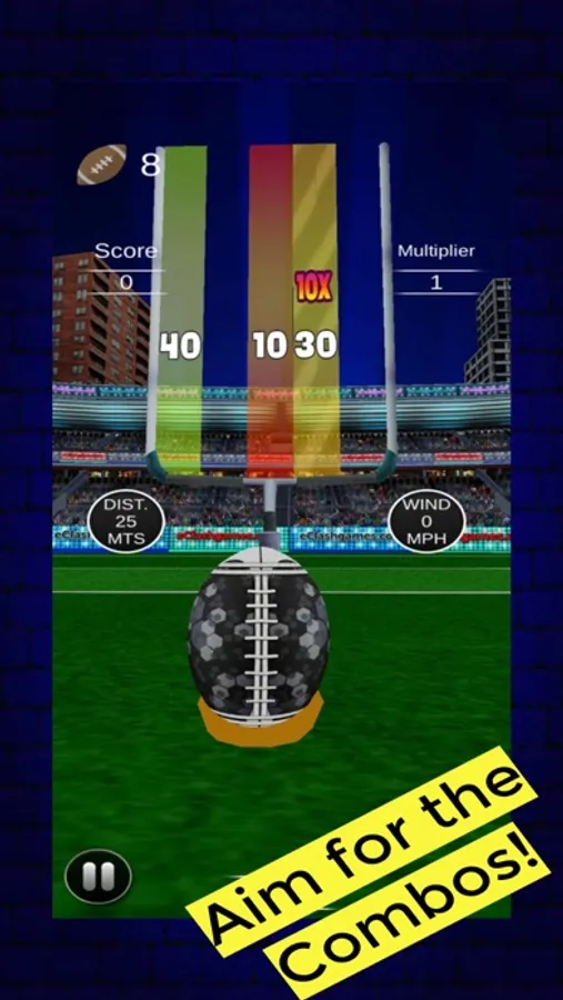 -Take aim and swipe up to kick the ball. Watch out for the wind direction and power and aim accordingly so the ball swings to the target.