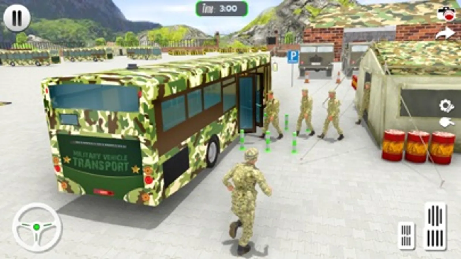 Play USA Bus Parking Sim in different game modes. Move towards army check post to transport. Career Mode, Bus Mode, Helicopter Mode and Cargo mode are included in public coach transports. Start your milltery driving duty and serve the nation by helping US Soldiers. Impossible missions need mountain high courage and determination to be done. And USA Army Soldiers are always ready to complete tasks in milltery driving transporter games. Take the challenge in Army Bus Parking and complete it if you want to defeat robots soldier. Robot troops will attack your US soldiers and you will save soldiers. As milltery driving you are there to save lives of soldiers otherwise robot army soldiers will destroy your army fort.
