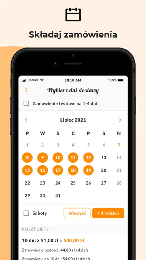 • Zmiana dat dostawy - wyjazdy służbowe nie stanowią problemu- dowolnie zmieniaj dni dostaw w kalendarzu!