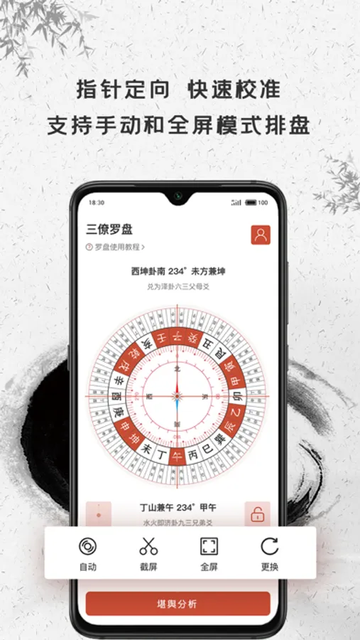 用法:选择需要测量的场景,录入数据或调出罗盘,转动四周保存即可。
