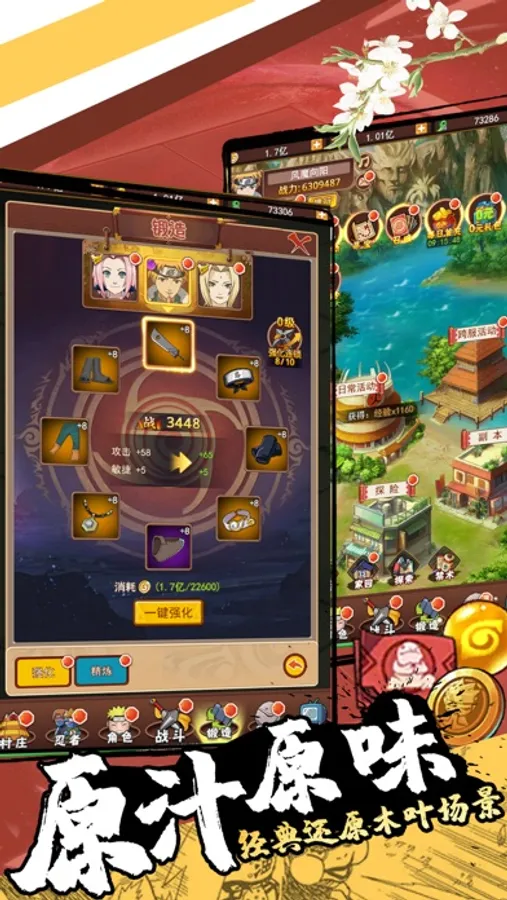 经典背景音效让你身临其境,公平竞技,挂机轻松,丰富关卡,畅爽激战,来领略超精致忍者【查克拉凝练】冒险手游