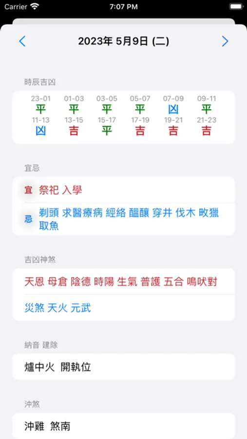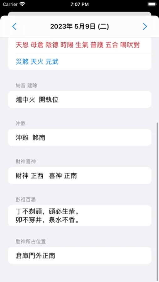 ‧ 每日 沖煞, 生肖, 財神, 喜神 方位。