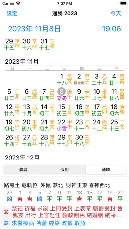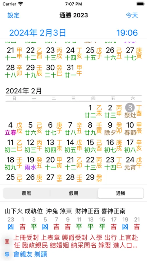 ‧ 本軟件提供由 2009年12月 至 2024年2月 的宜忌資料(已包含農曆 2023 整年度)。