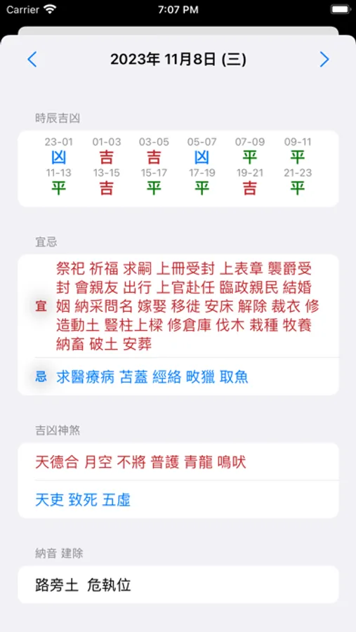 ‧ 每日 吉凶神煞, 納音五行, 十二建除。